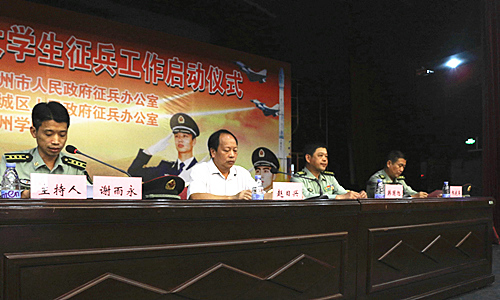 本网讯 4月29日下午,惠州市2016年大学生征兵工作启动仪式在我校鹅城音乐厅隆重举行。学生处、武装部、团委负责人、各系总支书记(副书记)以及学生代表出席了此次会议。