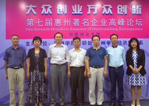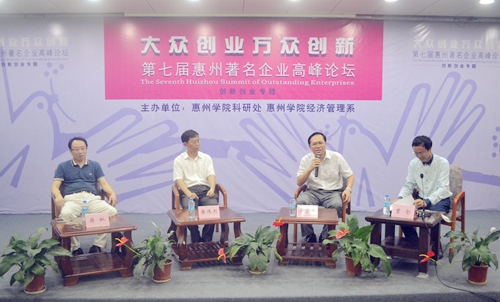 本网讯 5月27日下午,以“大众创业,万众创新”为主题的第七届惠州著名企业高峰论坛在我校图书馆报告厅举行。国际级高新技术开发区新技术产业园部长廖紫基、德赛集团技术创新中心总经理黄伟烈以及惠州梦工厂实业有限公司总经理蒋枞做客高峰论坛,讲述了他们对创新创业的独到见解。论坛由学校科研处、经济管理系主办,经管等系师生参加了这次活动。