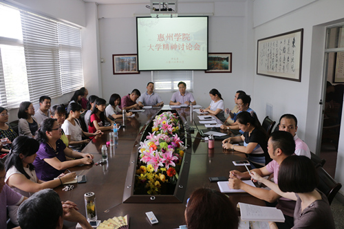 本网迅 6月1日下午,由中文系党总支赖常青书记主持的“惠州学院大学精神”研讨会在该系会议室召开。讨论会上,中文系教师就“什么是大学精神”“如何凝练和践行惠州学院大学精神”等展开讨论,发表自己的意见和观点。