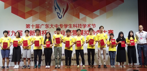 本网讯 6月4日-5日,第十届广东大中专学生学术科技节之第九届“新道杯”企业经营沙盘模拟大赛在北京理工大学珠海学院进行。来自全省的89支院校代表共445名学生参与竞逐。我校周贤达、李志贤、姚丽琼、陈俊兰、李晨嫣等5名13级经管系学生组成的HIGHER TEAM 团队代表学校参赛,经过两天的激烈角逐,获得本科组三等奖。