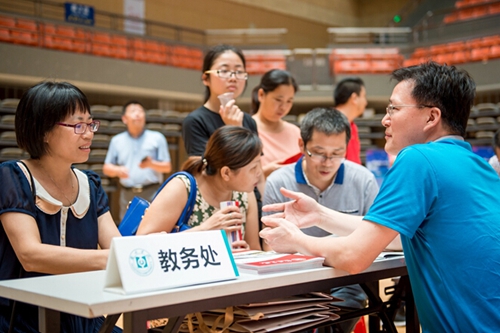 教务处咨询摊位,不少学生及家长前来咨询。