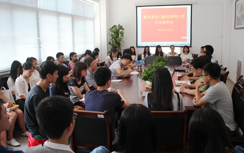 本网讯 “我们统计学专业大四去哪实习?”“毕业要找什么样的工作?”这是同学们在数学系新设专业指导会上提出的疑问。为了进一步做好新设专业学生的思想稳定工作,解决新设专业学生的就业顾虑,近日数学系党总支召开2013级应用统计学专业学生指导会。数学系潘庆年主任、金岩书记、柯忠义副主任、陈益智副主任、蒋辉教授、李羽老师和全体2013级应用统计学专业学生参加了本次会议。