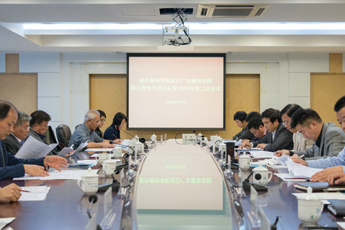 会议分五项议程进行。旭日广东服装学院院长张志明教授首先就服装学院竞争力提升计划项目2016年下半年工作进展和具体工作进行了汇报:一是成立旭日广东服装学院并挂牌,学院设有三个系、两个中心,目前正积极筹备成立旭日广东服装学院董事会;二是开展试点学院专题调研,拓展与其它高校的学习交流,加强与集团公司的深度合作;三是成功承办全国服装教指委会议,加强与兄弟院校交流创新创业发展经验,较好地宣传了我校和服装学院,提高了学院的影响力;四是完成了广东省服装协同创新发展中心工作的中期检查;五是精心组织节目参与校庆表演,组织了共400多名校友返校参加校庆和参观办学成果展,举办校友座谈会、文艺表演,受到校友的一致好评,为七十周年校庆增光添彩;六是发挥香港制衣业训练局团队作用,对毕业生进行了问卷调查和公司访谈的质量调研;七是搭建平台,为教师创造进修与交流学习的机会。他还从国际合作与交流、优化人才培养、政校行企合作、科研发展等四个方面具体工作进行了汇报,表示为适应学校向应用型转型的新要求,服装学院已制定一系列惠州学院转型发展建设项目计划,规划建设研发中心与实践基地、先进材料研发中心和硕士点申报,开办鞋包饰品专业方向,搭建学科竞赛创新平台。
