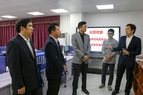 在彭永宏校长的陪同下,李董事长一行首先参观了我校信息科学技术学院、数学与大数据学院以及电子与电气工程学院部分实验室和协同创新中心,详细了解我校相关专业目前的办学特色、人才培养、实验室建设等情况。参观结束后,双方在行政楼202会议室举行了座谈。刘国栋副校长主持座谈会。