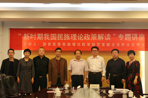 朴永日博士围绕国内外有关中华民族理论与政策的讨论展开讲座,并对近年来我国基本民族理论和政策以及2014年召开的中央民族工作会议的背景意义作了说明。讲座重点对习近平总书记在中央民族工作会议上的重要讲话精神做了精辟的分析。朴博士指出,习近平总书记的重要讲话,深刻阐述了当前和今后一个时期我国民族工作的大政方针,提出了一系列新思想、新论断、新认识,作出了一系列新决策、新部署、新要求,是做好新形势下民族工作的纲领性文献,必将对开创民族团结进步事业新局面产生重大而深远的影响。朴博士从“准确把握我国统一的多民族国家的基本国情”、“坚持中国特色解决民族问题的正确道路”、“坚持和完善民族区域自治制度”、“加强中华民族大团结”、“加快民族地区全面小康社会进程”、“构筑各民族共有精神家园”、“重视做好城市民族工作”、“做好民族工作,关键在党、关键在人。”等八个方面,对我国的民族理论政策进行了深入浅出的论述。讲座主题鲜明,内容翔实,有理论有实践,进一步加深了与会人员对民族团结重要性的认识。对我校做好校内民族工作、宗教工作和统战工作提供了很好的指导和帮助。