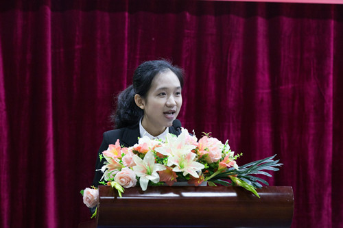 会上,经济管理学院许林媛同学作为获奖学生代表发言。她首先对学校及领导老师的悉心指导和关心关爱表示衷心的感谢,表示要以身作则,严于律己,坚持养成积极进取的心态、求真务实的干劲、追求卓越的恒心,自觉践行社会主义核心价值观,自觉养成正确的世界观、人生观、价值观,踏踏实实做事,谦虚谨慎做人,在以后的学习、成长道路上百尺竿头,更进一步,切实在同学中起到模范带头作用!