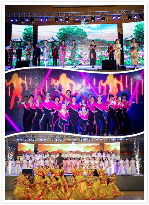 随着外国语学院带来的开场序曲《Rather Be》徐徐铺展,富有激情的歌声和炫丽的舞台瞬间点燃了现场气氛,拉开了本次文艺汇演的序幕。音乐学院小乐队带来了一首《Blue Bossa》乐器演奏先声夺人,各种乐器音韵融合,给我们带来了一场听觉盛宴。电子信息与工程学院李昌勇老师携子用吉他深情演绎《你的眼神》,温馨的父子之情成为台上最难忘的一幕。一群特殊的演员为大家献上了藏族舞蹈《再唱山歌给党听》,他们都是我校退休教师,平均年龄达65岁,其中最高年龄为79岁,给这次文艺汇演注入了不一样的年轻活力。继续教育学院邓伟浩老师带来的神奇魔术表演《魔幻奇迹》以高超娴熟的技法惊羡了在场观众,引起了阵阵惊叹声。机关一分会、教职工瑜伽协会和体育学院带来的《岁寒三友》系列表演,融合了太极表演、瑜伽表演和武术表演的精华,刚柔相济,展示了我校教职工阳光健康的精神面貌。《青春之歌》系列歌曲串烧则以纯真的语言和画面,将老师们带回了回忆无穷的青葱岁月……