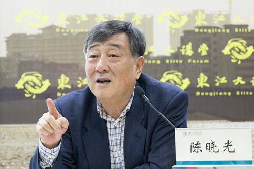 本网讯 2月22日上午,我国著名词作家、诗人(原文化部副部长、原中国文联副主席)陈晓光教授做客我校东江大讲堂,作了题为“中国歌曲一百年”的学术讲座。讲座由校党委书记刘晟主持,校长彭永宏,校党委副书记赵日兴,副校长赖美琴,广东省及惠州市音乐家协会领导、创作骨干,音乐学院、文学与传媒学院部分师生聆听了讲座。