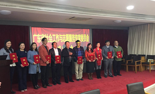 周巍老师(右二)被省民政厅聘为广东省社会工作与志愿服务专家委员会委员