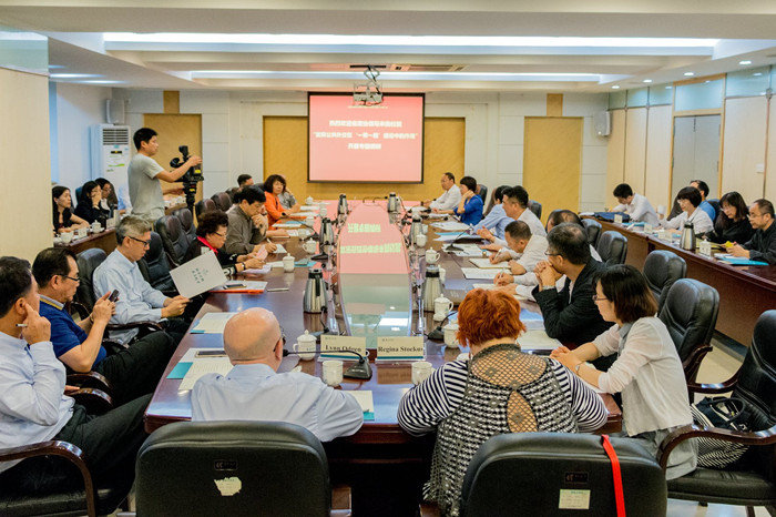 本网讯 4月11日下午,由省政协外事侨务委员会主任、广东公共外交协会副会长吴锐成,省政协外事侨务委员会副主任、广东公共外交协会常务副会长傅朗率队的省政协调研组,在市政协主席黄雁行,市政协副主席、秘书长罗庆云,市政协副主席黄志忠等的陪同下,来我校就“发挥公共外交在‘一带一路’建设中的作用”开展调研。