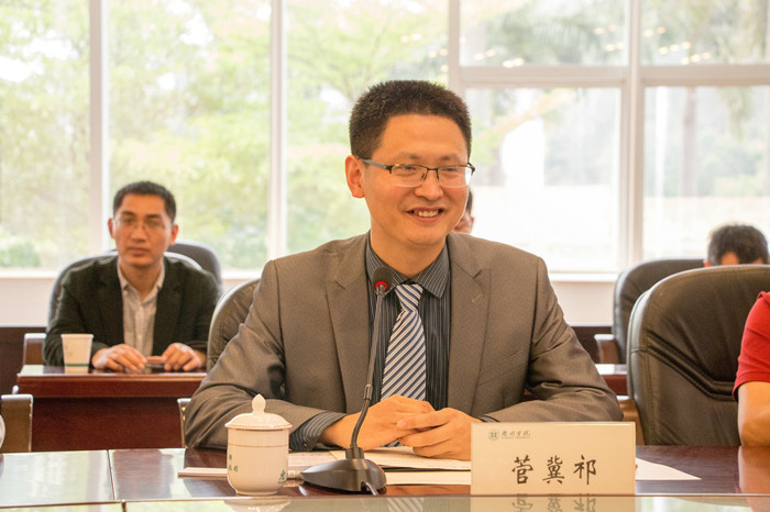 菅冀祁会长介绍了惠州市医疗器械行业协会的发展历史及取得的系列成果,指出此次合作前景很不错。他说,从南宋丰湖书院到崭新的惠州大学,惠州学院一直是惠州文脉之所在。作为惠州人,为惠州学院等本地教育机构做贡献既是一种责任,又是一种荣耀。惠州学院就好比惠州的文脉所在,惠州市医疗器械行业协会既期望能够借助我校的科研平台和专家学者等资源,把学术研究转化为企业产品,也迫切需要我校为惠州市医疗器械行业培养和输送优秀人才。