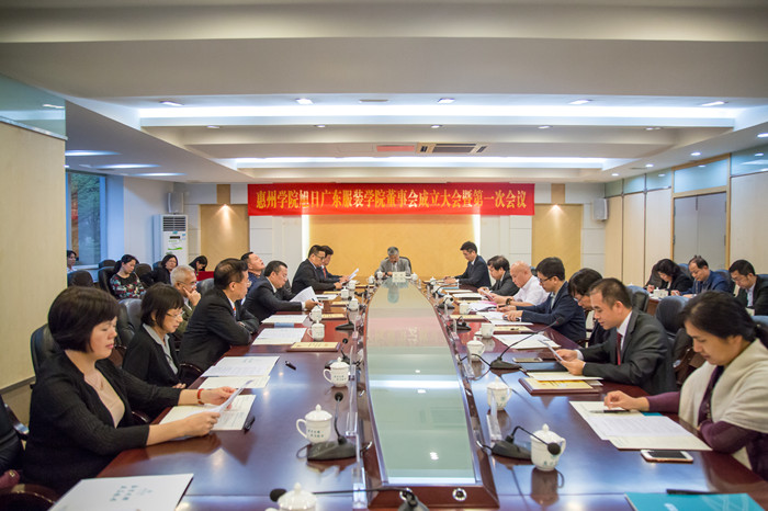 本网讯 4月27日下午,我校旭日广东服装学院董事会成立大会暨第一次全体会议隆重召开。香港旭日集团副董事长兼总经理杨勋先生、香港制衣业训练局总干事杨国荣先生、真维斯国际(香港)有限公司董事兼副总经理刘伟文先生、惠州市嘉鸿实业集团有限公司董事长郑伟明先生、深圳市兆文纺织服装有限公司董事长王文刚先生、佛山市安东尼针织有限公司董事长刘必胜先生、东莞市天成动漫有限公司董事长袁永谦先生,我校校长彭永宏、党委副书记赵日兴、副校长刘国栋,服装学院党政班子成员、相关企业负责人及教师代表参加了成立大会。会议由刘国栋副校长主持。