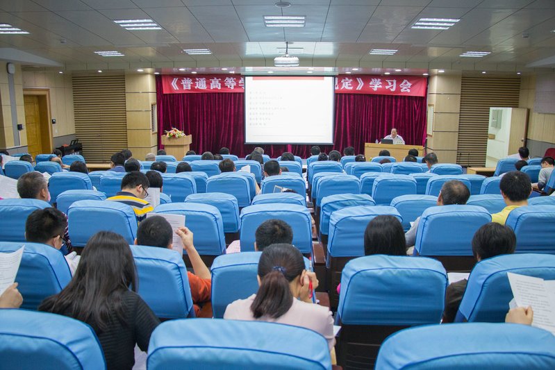 本网讯 5月3日-5日,我校举办了新修订的《普通高等学校学生管理规定》 (中华人民共和国教育部令第41号)的系列学习会。各职能部门、二级学院党政负责人,团委、学生处、教务处全体人员,辅导员、班主任、教务员等参加了不同层面的集中学习。