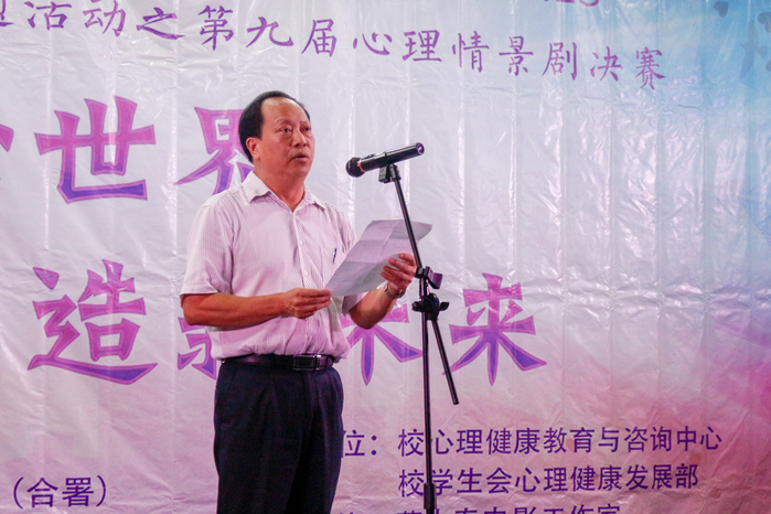赵日兴副书记首先为大赛致辞。他指出,建设幸福校园,让同学们快乐学习、幸福生活是学校责无旁贷的责任和义务。一个人只有拥有健康的心灵才能享有幸福的人生,希望通过开展“5.25”心理健康月系列活动,让同学们重视心理健康,拥有快乐成长、幸福生活的空间与能力!