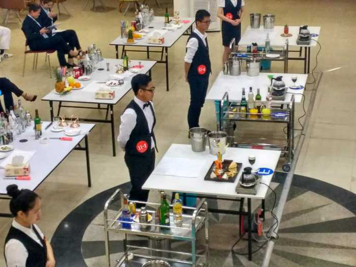 本次大赛共有来自全国29个省区市256所院校的789名选手报名参加,分为本科院校、高职高专院校和中职学校三个组别,设中式铺床、西餐宴会摆台、中餐宴会摆台和鸡尾酒调制四个参赛项目。大赛设综合理论知识考核、现场实操和英语口语测试三个比赛环节,经过2天3晚的激烈比拼和裁判组的规范评判,最终产生各组别的单项一、二、三等奖和优胜奖。