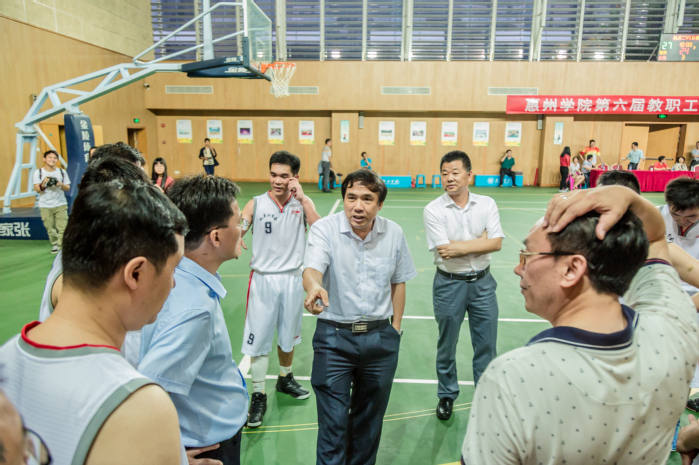 本网讯 为了丰富广大教职工的业余文体活动,增强教职工身心素质,加强教职工团队意识,2017年4月17日至5月9日,我校工会组织开展了惠州学院第六届教职工篮球赛。全校23个分工会组成14支队伍(联队)参加角逐,近200名队员参加了比赛。校领导彭永宏、李韶春、刘国栋、罗川山到场观赛或亲自参赛,在为运动员加油的同时亲身感受篮球和体育的魅力!
