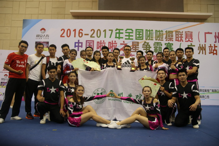 本网讯 5月19-21日,2016-2017年全国啦啦操联赛(广州站)、中国啦啦之星争霸赛(广州站)暨广东省啦啦操锦标赛在广州体育学院举行,我校荣获“公开青年甲组技巧3级规定动作”和“公开青年丁组集体技巧超级(6级)自选动作混合”两项冠军,体育学院李强老师荣获“优秀教练员”称号。