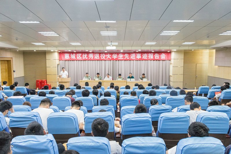 本网讯 为增强广大适龄青年特别是高学历青年献身国防、报效祖国的自豪感和责任感,6月13日下午,惠城区优秀退役大学生先进事迹报告会暨大学生征兵政策宣讲课在我校图书馆报告厅隆重举行。校党委副书记赵日兴,惠城区区委常委、区人武部政委谢雨永上校,学校武装部、学生处、团委相关负责人,各二级学院辅导员代表和学生代表等参加了报告会。报告会由学校武装部部长李金利主持。