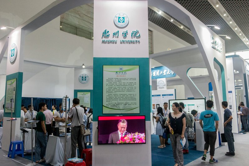 本网讯 首届中国高校科交会上,惠州学院的特装展位大气醒目,作为惠州唯一一所综合性本科高校,在本届科交会上,惠州学院遴选了32项科研成果进行重点展示和推介,涉及电子、信息、化工、生物、计算机软件、服装等领域。而且惠州学院展示了很多贴近市民生活,接地气的成果,科交会3天时间,惠州学院展厅的人气几乎是全场最旺。