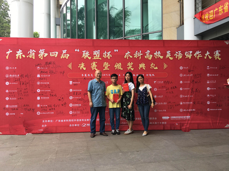 本网讯 6月24日,广东省第四届“联盟杯”本科高校英语写作大赛决赛暨颁奖典礼在华南理工大学顺利举行。我校外国语学院2014级英语(师范)专业方蝉冰同学及经济管理学院2015级财务管理专业林俊远同学代表我校参赛,分别获得英语专业组及大学英语组一等奖。