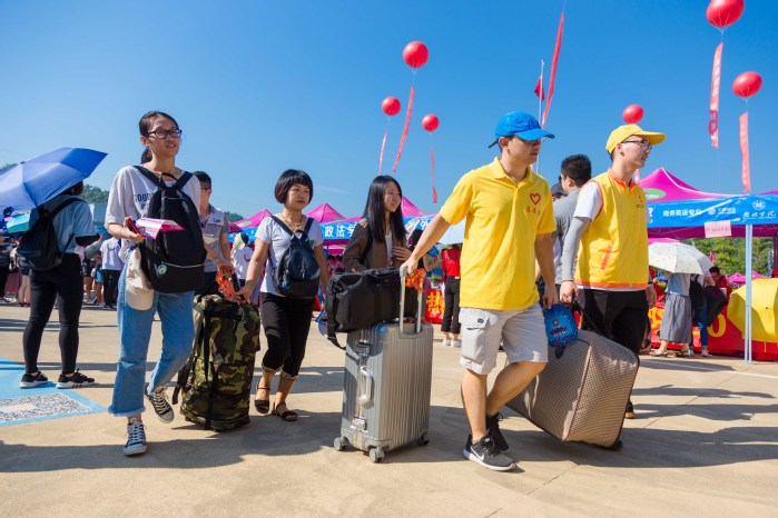 外国语学院新生吴香同学表示,一进校门就有志愿者师兄主动上前帮拎行李到宿舍,指引报道位置与路线,让自己感到非常贴心与温暖。