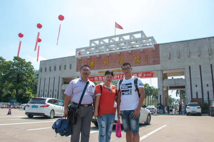 戴着边框眼镜、拿着包、高大的赵爸爸与身穿红衣服的赵妈妈在接手记者采访中谈到,他们是提前一天搭乘同乡会的包车来到了惠院,从家里来到学校非常便利。赵爸爸一行人在闲暇的时候游览了校园,观察了宿舍和饭堂的环境,认为学校的环境很符合他们心目中大学的形象,孩子来这里读书,让他们感到比较满意。同时,赵爸爸也表示,惠州学院让他们感受最为深刻的就是师兄师姐们的热情帮助、同学们之间的亲和力、有条不紊的迎新工作人员,这一切超出了他们的想象,让他们很有归属感!