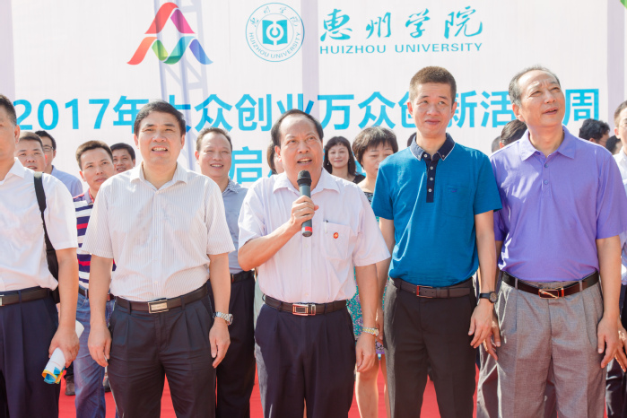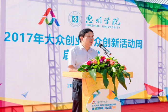 随后,校党委副书记赵日兴宣布“惠州学院2017年双创活动周”正式启动。他表示,“双创”活动周作为国家和国家教育部门为高校培养创新创业人才搭建的育人平台,在活动举办期间要突显出我们的参与功能,树立起先进的创新创业教育理念,切实加强大学生创新创业教育,确保应用型人才培养质量。