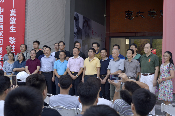 本网讯 9月16日上午,“气正心远——莫肇生、黎柱成、叶其嘉、潘小明中国画巡回展”在我校惠大美术馆开幕。此次展览由惠州学院美术与设计学院与广东省美术家协会、惠州市报业传媒集团、惠州市文学艺术界联合会、中山市文学艺术界联合会、肇庆学院美术学院、惠州国画院等单位联合主办,惠州学院惠大美术馆承办。我校副校长刘国栋、罗川山,惠州市委原常委、军分区原政委肖红大校,美术与设计学院党政负责人,惠州美术界及新闻界相关人士、美术与设计学院师生代表等200余人出席了开幕式。