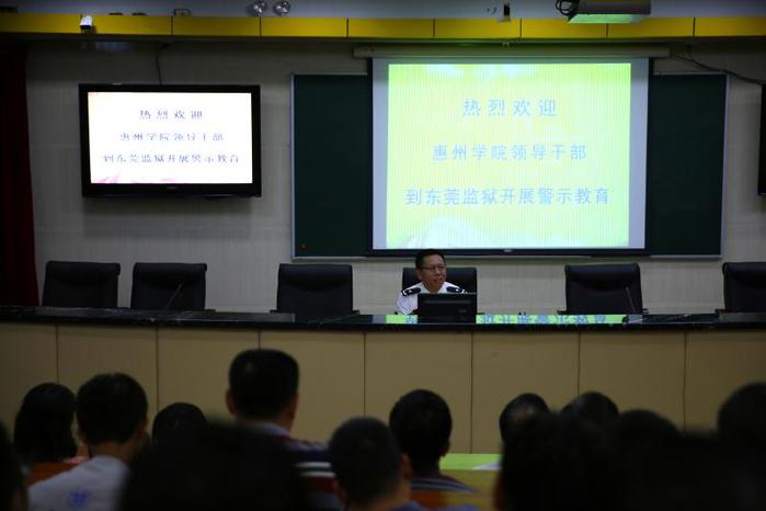 本网讯 为进一步增强党员干部的遵纪守法观念,强化廉洁自律意识,筑牢拒腐防变的思想防线,按照2017年学校纪律教育学习月活动部署,11月15日下午,在校党委副书记兼纪委书记李韶春、副校长刘国栋的带领下,我校副处级以上干部和纪委办全体人员近100人赴东莞监狱开展警示教育活动。