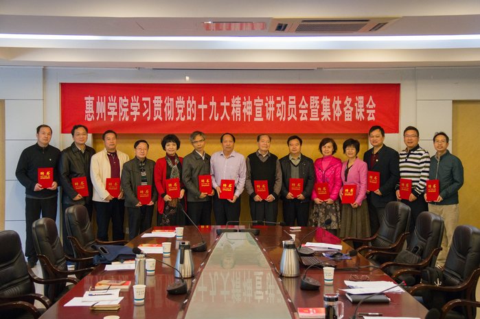 据了解,根据学校党委印发的《中共惠州学院委员会党的十九大精神宣讲工作方案》,相关职能部门已认真细致基本完成宣讲团的准备工作。接下来,我校将认真组织开展党的十九大精神的校内宣讲活动,高质量、高水平完成党的十九大精神宣讲任务,确保人人受教育、师生共成长,帮助广大师生把思想和行动统一到党的十九大精神上来,统一到中央、省委、市委和学校的决策部署上来,推动我校各项事业再上新台阶,加快建设理工科特色鲜明的高水平应用型大学!
