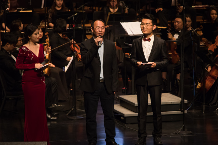 本网讯 12月6日晚,我校纪念建校71周年暨校友返校日活动之“文学与传媒学院1989届林建隆校友原创作品交响音乐会”在惠州市文化艺术中心上演。广东药科大学党委书记、我校原党委书记杨海涛,省音协副主席兼秘书长金旭庚,我校党委副书记赵日兴,党委副书记兼纪委书记李韶春,副校长赖美琴、许玩宏、罗川山,省文广新局、省音协,汕尾市委、市政府、汕尾市文联相关负责人,海丰县政协,惠州市直相关职能部门等领导嘉宾以及我校校友、师生代表共1000余人观看了音乐会。