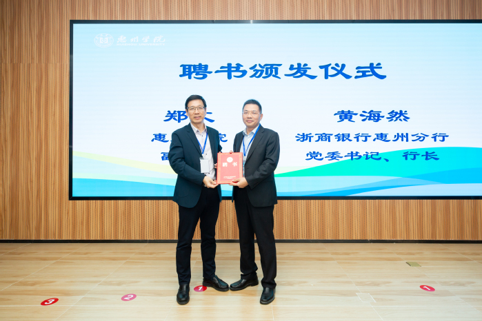 郑文副校长为浙商银行惠州分行党委书记、行长黄海然颁发兼职教授聘书