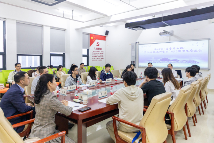 宣讲会结束后,与会领导和部分学生代表在旭日科技大楼B座1508会议室进行深入座谈交流。座谈中,与会学子代表逐一分享了自己的职业规划和返乡就业创业的疑虑,张新文副县长和钟智栋局长逐一耐心解答,龙门县领导的细致回应赢得大家的阵阵掌声,大家纷纷表示,深切感受到家乡对人才回归的渴望和诚意,本场“学子归巢”宣讲活动坚定了大家返乡就业创业的意愿,也树立了大家毕业后建设家乡的决心。