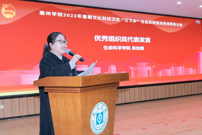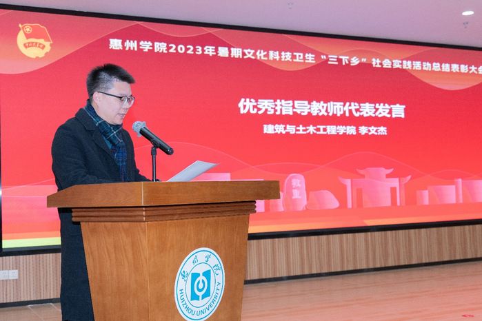 活动现场,受表彰的国家级、省级、校级优秀个人、优秀项目奖以及优秀组织单位奖代表上台领奖。优秀团队代表李桂熔、优秀指导老师代表李文杰以及优秀组织单位奖代表吴怡楠分别分享了参与社会实践的经验和收获。