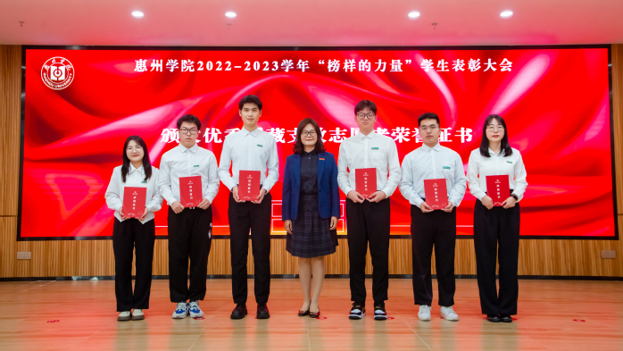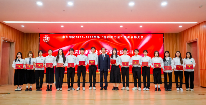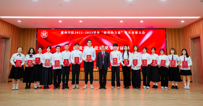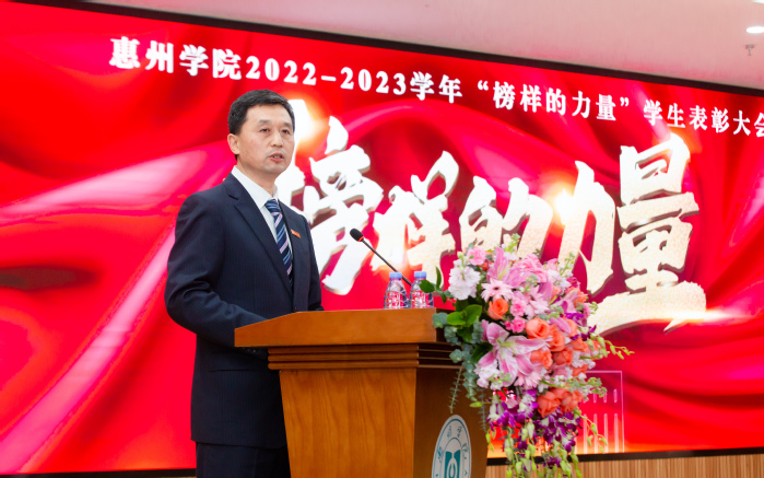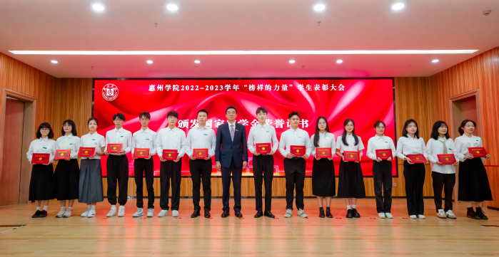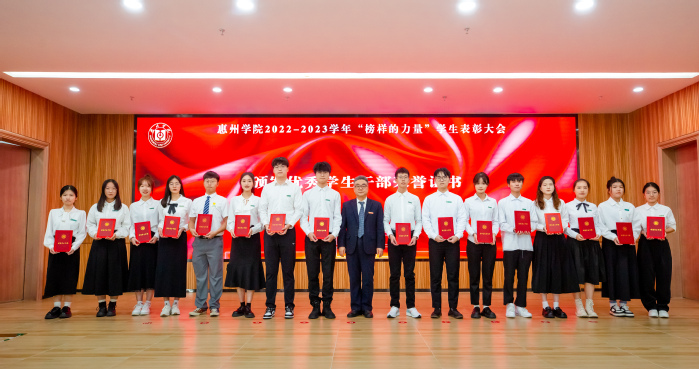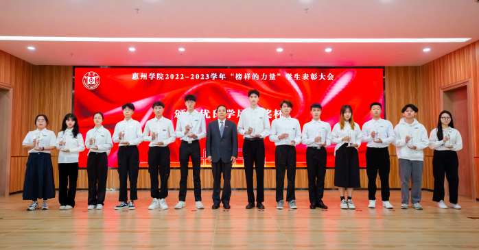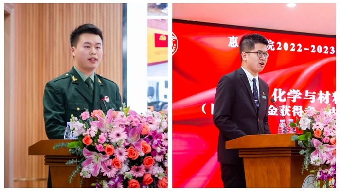 会上,国家奖学金获得者、优秀退役大学生代表葛爱迪讲述了他在军营中磨练意志、锻炼自我的难忘经历,他不断突破自我,积极参加公益活动,乐于为同学服务,充分彰显青年大学生的爱国底色和奋斗本色。葛爱迪表示,青春一代要勇于承担时代重任,不断以身边榜样为指引审视自我,前进的目标就更加明晰。国家奖学金获得者、大学生创新大赛国赛银奖沈琪力分享自己的成长收获,“支持、担当和责任”是贯穿他大学生活的关键词,作为学科竞赛团队负责人,他始终坚信以个体带动集体发展的理念,带领团队攻坚克难,走出阆苑、走出惠州、走出大湾区,为学校斩获首个中国国际大学生创新大赛的国家总决赛奖项,实现历史性突破。