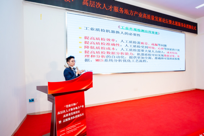 电子信息与电气工程学院党总支书记谭润志为会议致辞时指出,成立以博士党员为主体的志愿服务队是惠州学院和仲恺高新区企业用好“党建引领”这把“金钥匙”,是践行以高质量党建引领学院、服务地方高质量发展的重要举措。他提出要充分发挥党组织在人才引进和培养中的核心力、引领力、凝聚力和战斗力,利用高校、高新企业的专业优势和人才优势,搭建起校政企三方共谋、共建、共融、共享平台,助力地方产业创新高质量发展。