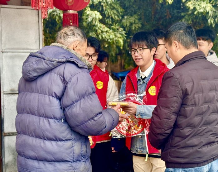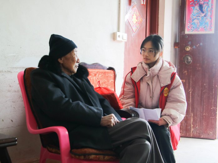 “咱们村目前人口数量不多,很多年轻人外出务工,有很多留守儿童和空巢老人。”在团队和横江村村委座谈交流的过程中,成员们了解到横江村目前有很多空巢老人和留守儿童,为了给老人们带来年前的祝福与问候,队员们组织了爱心探访,为老人们现场贴窗花,并坐下来和他们交谈,聆听他们过去的岁月和峥嵘往昔,并为留守儿童设计了绿色捡跑活动,带领当地小朋友沿着新修的河道来一场“健康”与“环保”的碰撞之旅;宝安村突队带上新年挂历、牛奶麦片探访慰问安墩镇宝安村老党员、老战士,追寻红色安墩的历史记忆,老党员曾先生在访谈中勉励青年学生要实现社会价值,为他人、为社会、为国家贡献出自己的一份力量。