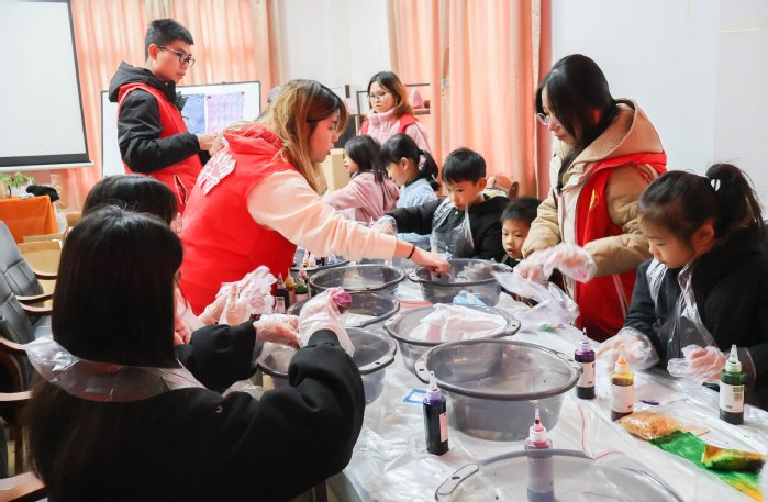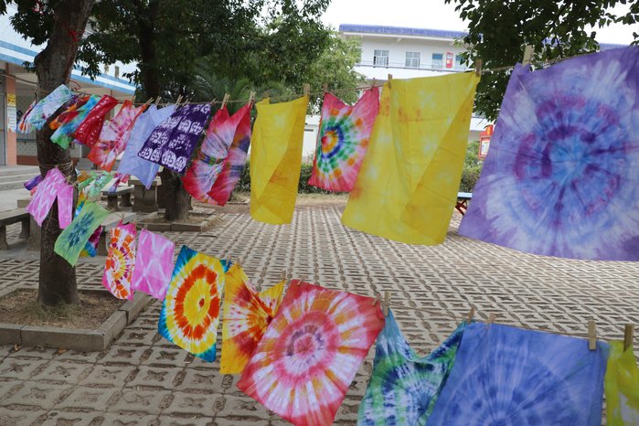 我校青年学生深入发掘非物质文化遗产,依托我校旭日广东服装学院专业特色,组建美育浸润志愿服务青年队深入农村、社区开展美育课程,传承非遗文化。4支百万工程突击队深入惠东县开展非遗传承工作坊,以“染”为主线,带领孩子们体验扎染、拓染、水拓等非遗传统技艺的魅力,在实践中感受古人的智慧和中华传统文化的艺术之美。