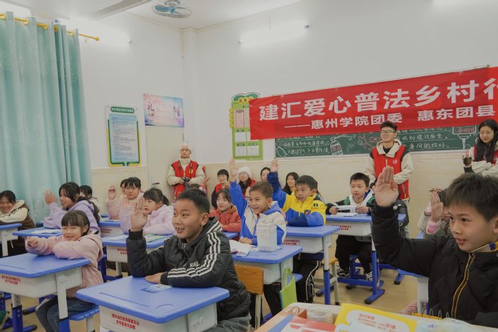 我校联合惠州市司法局法治科共同组织了4支大学生普法志愿者深入惠东县4个乡村开展建汇爱心普法宣传行动。项目内容涉及送法下基层与普法讲堂。青年志愿者们在当地进行实地调研,了解村民们的法律素养情况,通过小游戏、案例分析、发放宣传册、入户走访、开设普法讲堂等多种形式,针对农村不同年龄阶段群体的需求,让更多的居民参与到普法活动中来,提高其法律意识与自我保护能力。