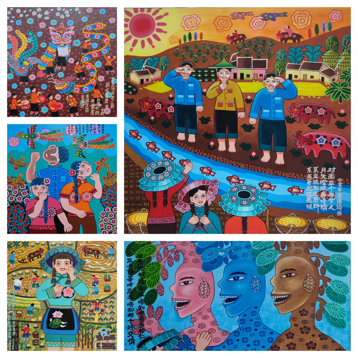 近年来,惠州学院以“龙门农民画”为依托项目,先后获批广东省高校中华优秀传统文化传承基地和广东省社会科学普及基地(惠州学院龙门农民画科普教育基地);聘任王汉驰、钟永廉等龙门农民画传承人为学校兼职教授;组织团队研发《龙门农民画欣赏与创作》教材,覆盖惠州市37所学校、近3万名中小学生;建成本校、高职、中小学三级联动、资源共享的“农民画工作坊”体系;与惠州南山学校、横沥中心小学及龙门永汉中学共建共享“广东省中小学艺术教育特色学校”“广东省示范性教师教育实践基地”;协同惠州市文化馆等单位共同建设面向全社会开放的龙门农民画慕课;深入开展“农民画进社区”活动……经过长期以来的努力,进一步提高了“龙门农民画”影响力和美誉度,让“龙门农民画”从龙门县的田间地头,进城市、进学校、进社区,飞入惠州乃至广东的“寻常百姓家”。