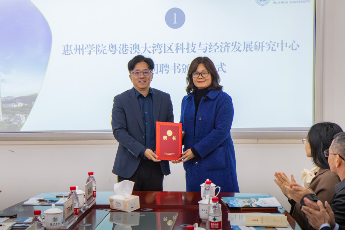 会上,车小真为易行健教授颁发惠州学院粤港澳大湾区科技与经济发展研究中心顾问聘书,并简要介绍了我校的办学历史、专业设置、人才培养、社会服务情况。