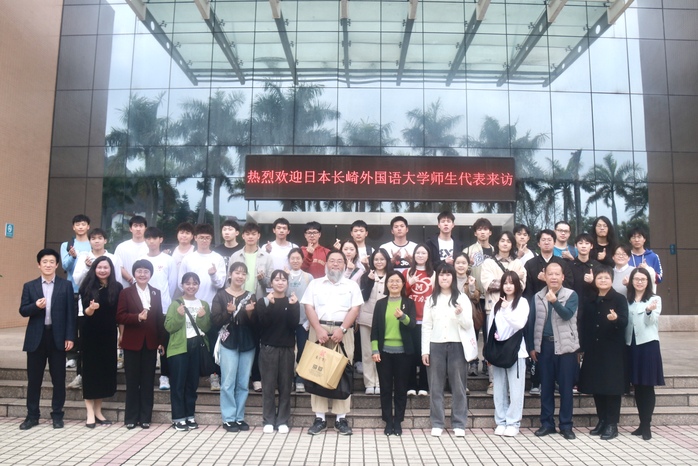 本网讯 3月5日下午,我校为日本长崎外国语大学师生首次短期交流学习研修班举行开班仪式。日本长崎外国语大学野田雄史教授和短期交流学生,惠州学院副校长魏晓慧,对外交流合作部、外国语学院、音乐学院、体育学院、旭日广东服装学院相关负责人及学生代表参加活动。