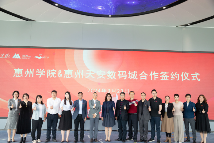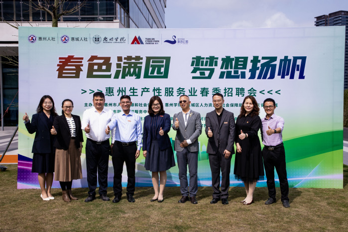 本网讯 为扎实做好2024届毕业生就业工作,推动校企共享发展新机遇、共谱合作新篇章,3月23日,我校与惠州天安数码城共同举办“春色满园 梦想扬帆”惠州生产性服务业春季招聘会暨校企合作签约仪式。学校党委副书记车小真出席活动并讲话。惠州市科学技术局、惠城区科技工业和信息化局、河南岸街道办事处、惠州市科技企业孵化器协会、惠州天安数码城、惠州学院相关职能部门及经济管理学院有关负责人参加活动。