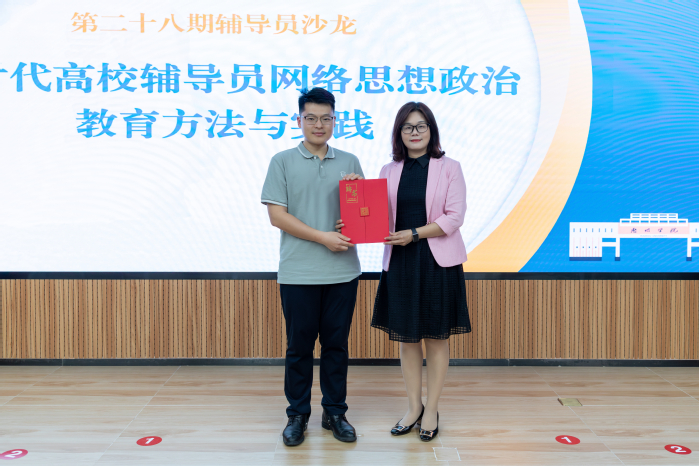 学校党委车小真副书记对刘国权的到来表示欢迎,并向刘国权颁发辅导员导师聘书。