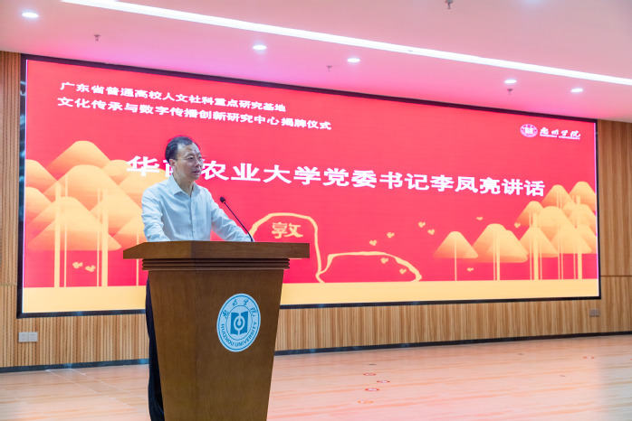 李凤亮在讲话中指出,当前我国正全力推动中华优秀传统文化创造性转化、创新性发展,提升国家文化软实力和中华文化影响力,惠州学院文化传承与数字传播创新研究中心的设立正当其时。他表示,华南农业大学在人才培养、学科建设、科学研究等方面与惠州学院继续协作前行。同时,期待文化传承与数字传播创新研究中心在文化传承传播的新场景营造、互联网时代数字传播的新途径构建、文化研究领域的新开拓、文化高端人才的培养等方面作出更大贡献。