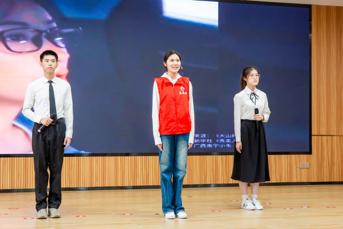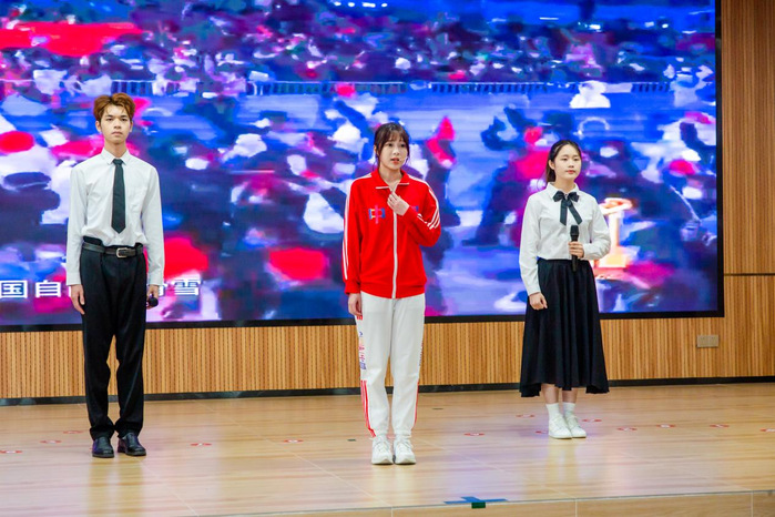 诗朗诵表演《以你为镜》,通过与脱贫攻坚榜样黄文秀、为国捐躯青年战士陈祥榕、感动中国乡村校长张桂梅、奥运冠军徐梦桃的跨时空对话,生动再现了时代楷模在服务中华民族伟大复兴进程中的感人事迹,发出了青年一代奋力拼搏“以你为镜”的铮铮誓言。