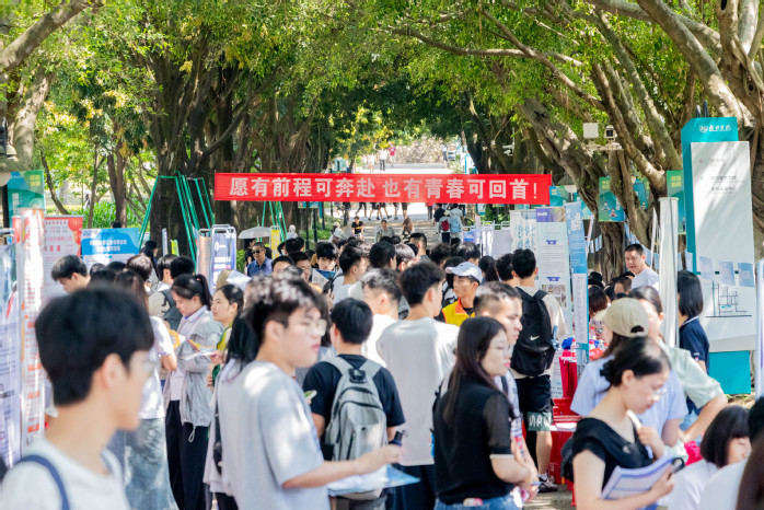据悉,本次招聘会共有175家企业参展,其中,世界五百强5家,上市公司15家,共提供岗位3911个。现场还设立了人才驿站服务窗口和直播带岗。驿站窗口为学生提供职业指导、就业创业政策、人才政策、劳动维权法,收集就业岗位,直播带架起大学生与用工单位交流的“云端”桥梁,实现用工单位和毕业生的“双向奔赴”,让就业“触屏可及”。毕业生们也在实时互动过程中更直观地了解岗位信息、企业的薪资待遇、社保福利、休假制度、员工成长路径等内容,增强投递简历的信心和决心。