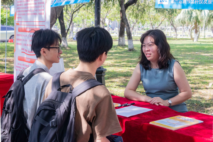 招聘会现场熙熙攘攘,热闹非凡。王胜和车小真陪同于加良一行深入招聘会现场了解情况,并简要介绍了我校就业工作。于加良要求学校和相关单位要抓住毕业生就业冲刺期,不断完善对接机制,进一步整合力量,共同推进毕业生就业工作,为惠州市经济社会高质量发展提供人才支撑。“仲恺这块宝地汇聚了众多高新技术企业,先后引进培育了5000多家中外企业,不仅是科技创新的高地,更是人才‘大展身手’的亮丽舞台,欢迎各位优秀的毕业生来仲恺施展拳脚,实现梦想。”仲恺高新区社会事务管理局党组书记、局长叶永宁在现场向广大学子发出“招贤榜”。