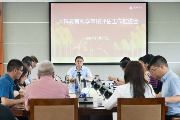 本网讯 5月28日下午,我校在行政楼501会议室召开本科教育教学审核评估工作推进会。校长王胜、副校长郑文、各行政教辅部门负责人、二级学院院长、教学质量监测与评估中心等相关人员参加会议。