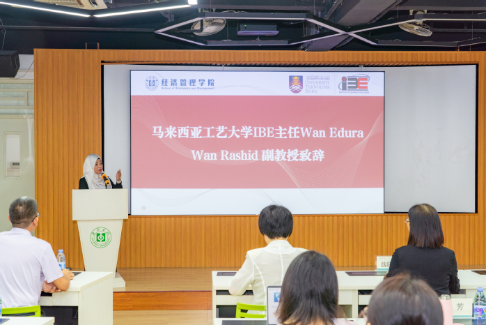 玛拉工艺大学商业卓越研究院院长Wan Edura Wan Rashid致辞并做专题汇报